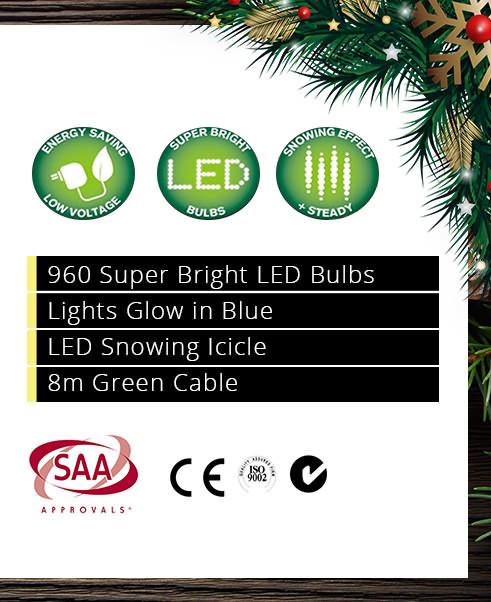 Outdoor 960 LED Snowing Icicle Blue Christmas Light Display with Timer