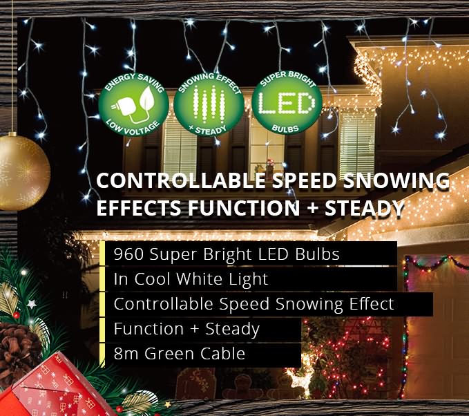 Outdoor 960 LED Snowing Icicle White Christmas Light Display with Timer